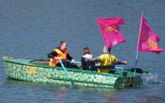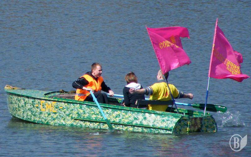 Бригада на лодке ловила что-то в реке. Явно не рыбу. Но всё равно крупному улову радовались искренне.