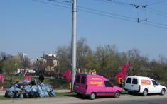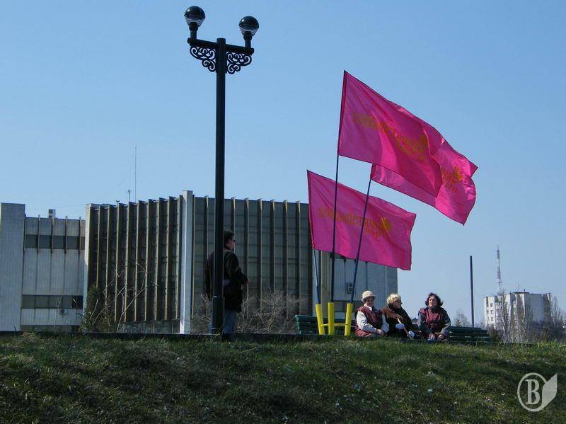 Сегодня утром около Красного моста в Чернигове высадился десант в розовых партийных цветах. На субботник.