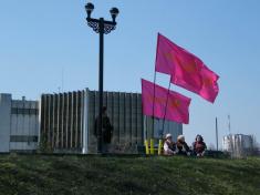 А в общественно полезной работе главное что? Чтобы её заметили! Поэтому к акции привлекали внимание громкой музыкой и многочисленными яркими флагами.
