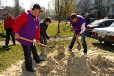 «Кролики» на Ремзаводі, на проспекті Перемоги, вулицях Бойовій, Рокосовського і Доценка саджали дерева, гребли листя, встановлювали пісочниці і просто спілкувалися з учасниками прибирання у дворах.