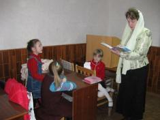 При храмі Архістратига Михаїла недільна школа діє вже п'ять років. Дітей за списком - біля двадцяти п'яти, але на заняття звичайно приходять 15-18 осіб.