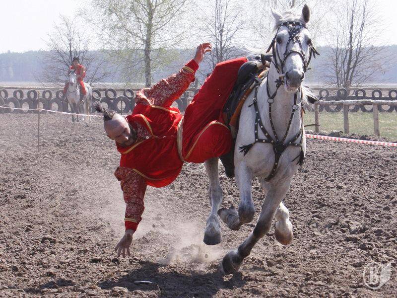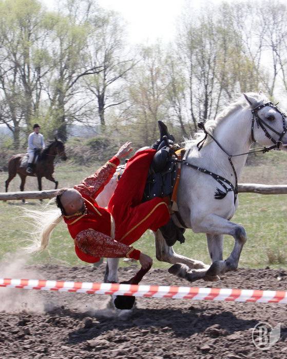 В одном из номеров нужно было поцеловать женщину-наездницу на скаку. Казак, который справился с заданием, получил сто долларов вознаграждения.