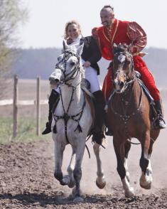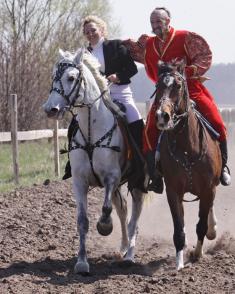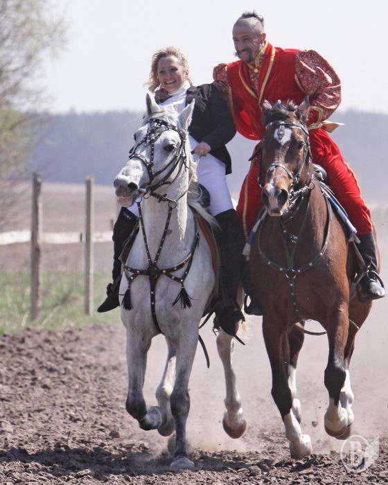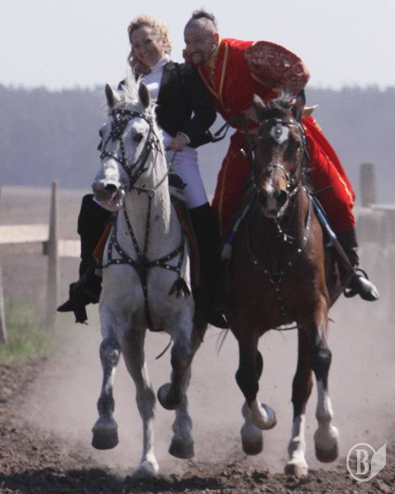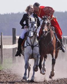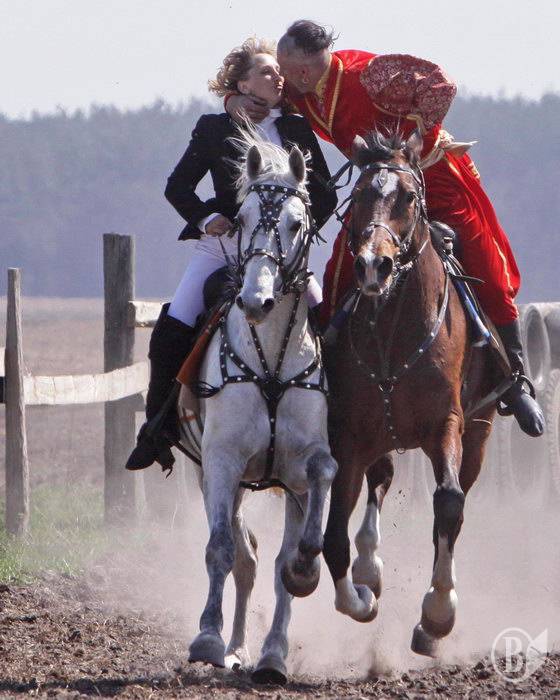 В одном из номеров во время конно-спортивного праздника в Черныше на Черниговщине нужно было на скаку поцеловать женщину наездницу.