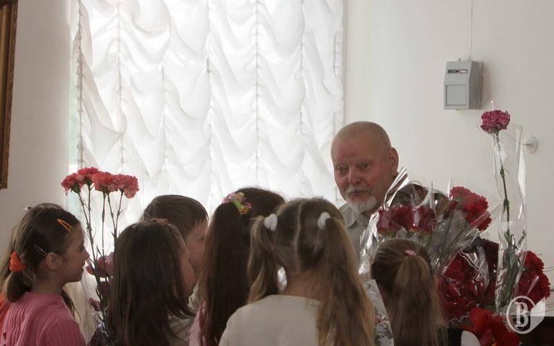 Он рассказал о своём творческом пути, о том как рядовым прошёл огневыми путями войны с винтовкой и блокнотом и карандашом в кармане.
