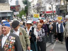 Нет той страны, иначе оцениваются много событий, но шли умирать они под красным флагом, и с ним сегодня выходят на демонстрацию. Это справедливо. Шли солдаты по улицам Хайфы, и было это торжественно и красиво.
