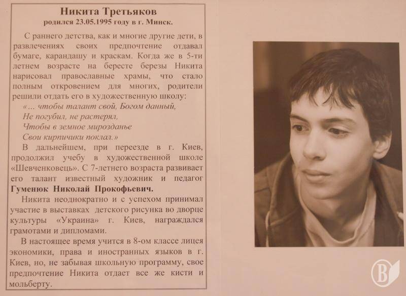 Открытие выставки состоялось на 14-ый день рождения художника. На выставке представлено около 30 картин Никиты.