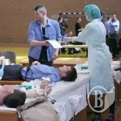 Уже около девяти утра в холле управления Министерства внутренних дел в Черниговской области было людно, а перед дверями в спортзал, где временно разместился областной отдел заготовки крови, стояла очередь.