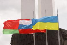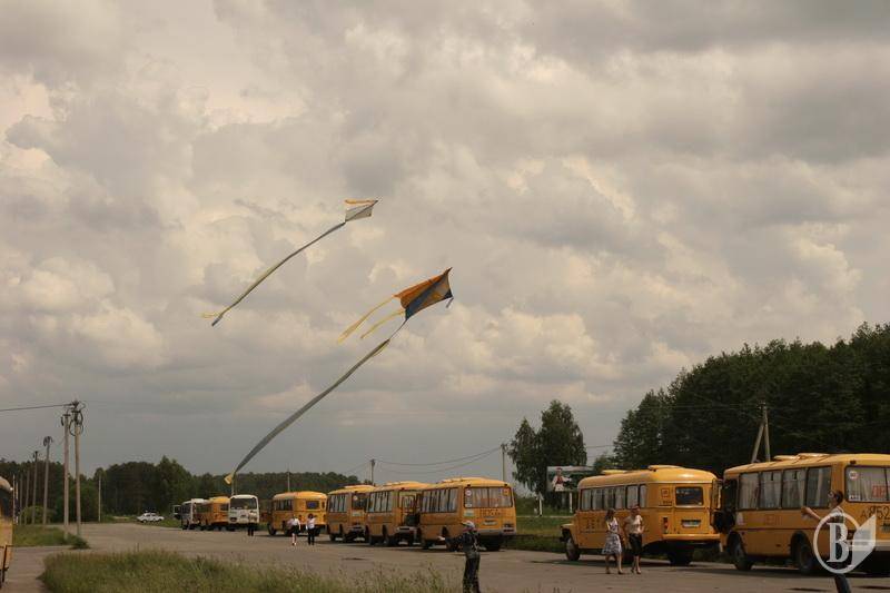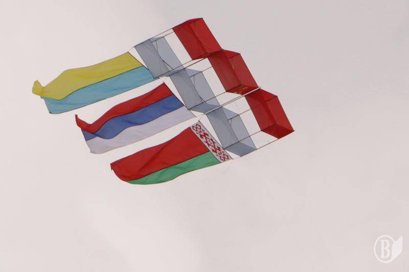 Юные авиаторы трёх государств продемонстрировали цветных воздушных змеев, которые символизировали флаги трёх государств.