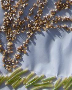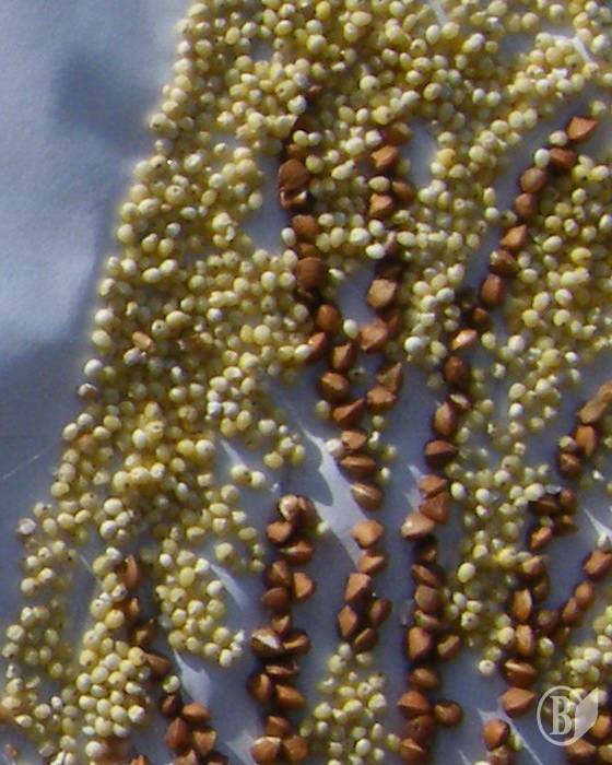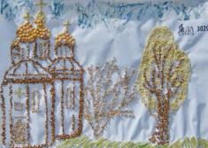 Здесь и гречневая церковь с гороховыми куполами, и пшеничные кусты, и деревья из пшена. Всё это – на травке из вермишели. Не хватает разве что молочных рек с кисельными берегами.