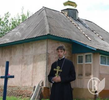 Отец Владимир приехал в Мену в конце прошлого лета. Долго не мог найти помещения, чтобы открыть храм. Пока не натолкнулся на Дом пчеловода, крайне запущенный. Не было ни электричества, ни отопления. И зимой молодой батюшка заболел воспалением лёгких. Благодаря Богу и нашим врачам стал на ноги очень быстро.