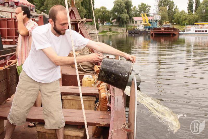 Экипаж лодки — преимущественно журналисты, которые не имеют профессиональных навыков гребли. «Цель нашего путешествия — это популяризация и охрана культурного наследия Украины, — говорит капитан. — Уникальность экспедиции в том, что на борту собрались лишь журналисты.