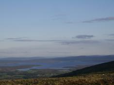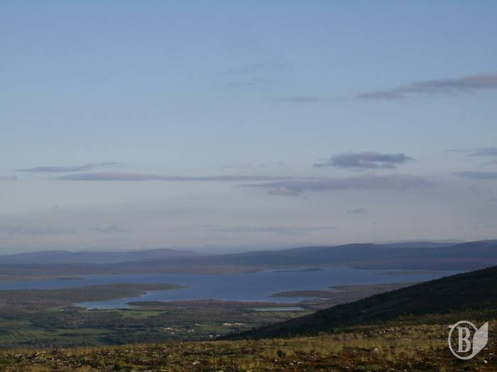 Следующим городом, который я осмотрел в Карелии, стала Сегежа. Оттуда и до самлй Кандалакши (больше 400 км) ехал на грузовом "Volvo", за рулем которого был работник из Украины Антон Михальчук (живет в Тернопольскй области, но работает в Ленинградской). Кандалакша оказалась малоинтересным городом, чего никоим образом не скажешь о Мончегорске. Поднявшись на вершину ближайшей к городу горы, я увидел чрезвычайно замечательную картину: заснеженые (невзирая на середину лета) хребты Хибинских гор, большое количество озер и кольскую тундру.