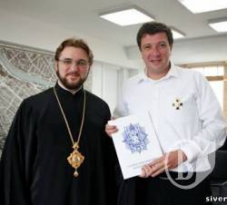 Епископ Илларион передал приветствие Святейшего Патриарха Филарета и наградил господина Угулаву орденом святого равноапостольного великого князя Владимира ІІІ степени за заслуги в утверждении Украинской Поместной Православной Церкви.