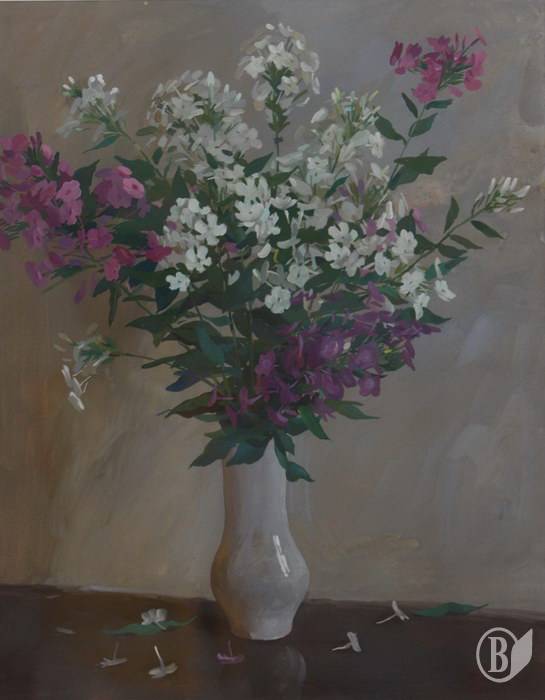 Сложные графические проблемы разрешает Н. В. Гайдук, работая и над натюрмортами. Он любит писать скромные полевые или садовые цветы в керамических кувшинах, временами на подоконнике, на фоне цветущего весеннего сада («Флоксы 1995, «Фиалки» 2007, «Пролески» 2002).