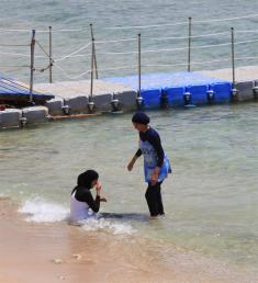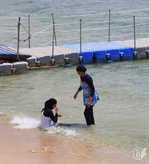 Вони на пляжах і в басейнах, а також біля них – на 100% загадкові. Адже купаються в тонких чорних штанах + плаття чи футболки поверх, та ще й зав’язана хустка.