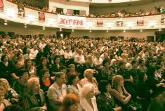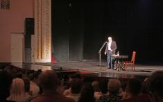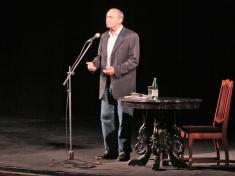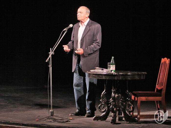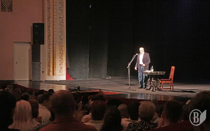 Об интересе к встречк с этим человеком нечего и говорить: билетов в кассах драмтеатра не осталось уже за неделю, а администрации пришлось увеличивать количество мест в зале с помощью стульев. Говорят, даже далеко не всем артистам театра достались „контрамарки”.