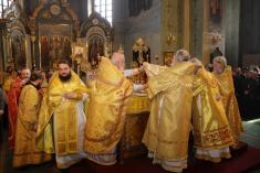 Накануне состоялся крестный ход, во время какого рака с мощами Святителя Феодосия перенесена в Свято-Троицкий собор.