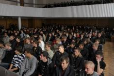 Зал райради був повністю заповнений, журналістам навіть довелося "стояти пішки", поки тривав захід. А про те, що він дійсно був святковим, переконливо свідчили зацікавлені обличчя старшокласників чернігівських шкіл, ліцеїстів військового ліцею та майбутніх призовників.