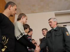 Майбутніх призовників привітали секретар Чернігівської міської ради Олег Шеремет, чернігівський міський військовий комісар полковник Володимир Кравчук, депутат міськради Олександр Шкурат.