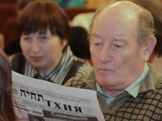 В фойе была развернута выставка, на которой можно было увидеть историю возрождения еврейской общины, ознакомиться с литературой и прессой.