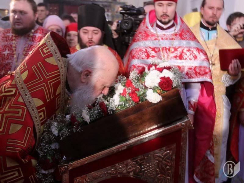 Святійшому Патріархові співслужили митрополит переяслав-хмельницький і бориспільський Димитрій та єпископ чернігівський і ніжинський Іларіон разом зі священиками Чернігівської єпархії.