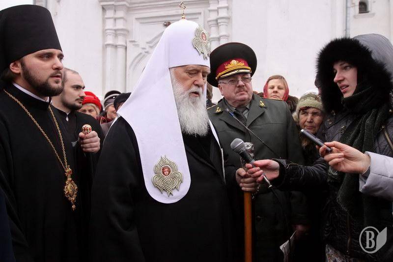Патріарх Філарет, незважаючи на свій 80-річний вік, людина мужня: він не став міняти жодного пункту своєї програми і пройшов спокійно біля обурених пікетувальників.