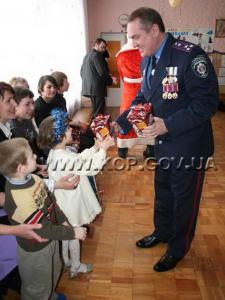 О создании праздничного настроения для них позаботились шефы из Управления МВД в области в лице заместителя начальника управления – начальника УКЗ УМВД Украины в Черниговской области полковника милиции Виктора Титоренко, который проведал малышню в канун Новогодних праздников.