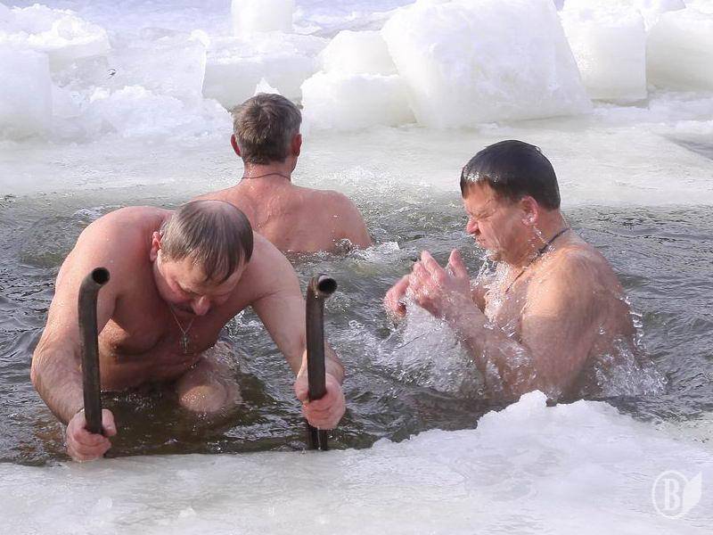 За звичаєм, на Водохреще прийнято тричі зануритися у воду та обов'язково з головою. Вважається, що цього дня, скупавшись на морозі, не захворіють навіть діти.