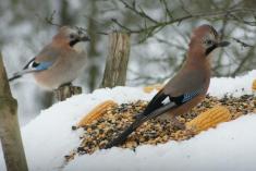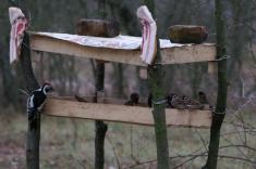 Для подкормки птиц используются разные виды кормов: подсолнух, рапс, просо, кукуруза, ячмень, пшеница, несоленое сало.