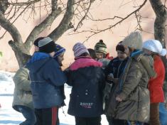 Зацікавили діток не тільки костюми виступаючих, а й сама розповідь, вони розчулено співчували голодним пташкам і після бесіди жваво побігли з зернятками до пташиних годівничок.