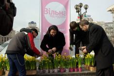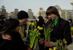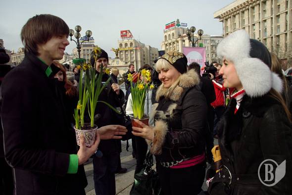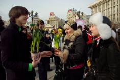 Такие же акции, когда женщинам предлагался на выбор природный цветок или покрашеный, прошли, кроме Киева, также в Донецке, Львове, Сумах, Симферополе и Черкассах.