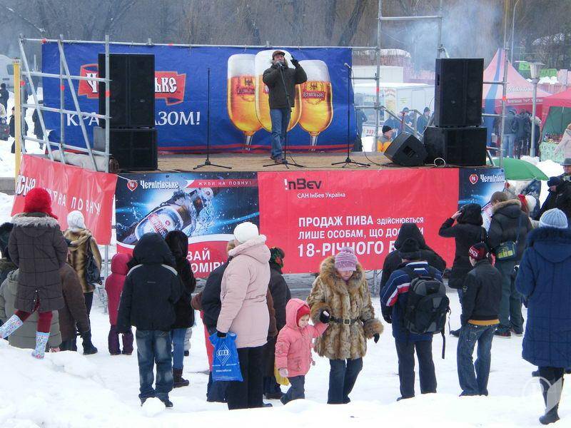 Яркой особенностью Масляной в Центральном парке культуры и отдыха стала пропаганда со сцены употребления женщинами водки, еще и с личным примером. В этот раз, во время праздника Проводов зимы, на сцене обошлось без водки. Зато ее «украсили» плакаты с изображением пива «Черниговское», а ведущий бодро объявлял несколько раз партнера праздника – SUN Inbev. Не одно, так другое!