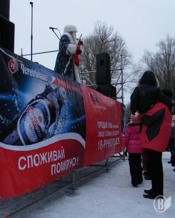 В целом практически ничего не отличало черниговские Проводы зимы от Масляной. Все на своих местах. Те же торговые палатки в количестве около полутора десятки с теми же продавцами. Тот же товар, те же завышенные цены. На том же месте составленная куча веток для сжигания живьем чучела. И на сцене – те же лица. Кроме разве что деда Мороза с прощальным визитом.