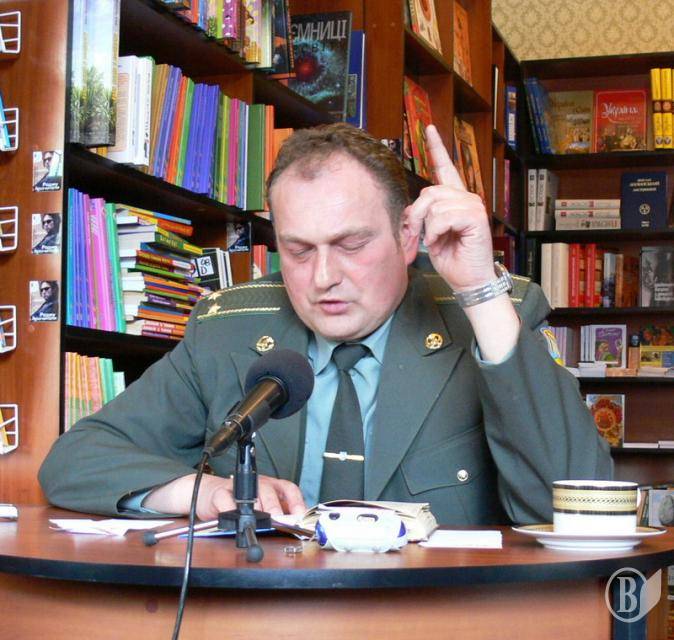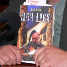 19 марта в черниговском Культурно-художественном центре"Интермеццо"в рамках социального проекта «Человек с книгой» читал книгу Ивана Билыка «Меч Арея» начальник регионального медиа-центра Министерства обороны Украины подполковник Валентин Буряченко.