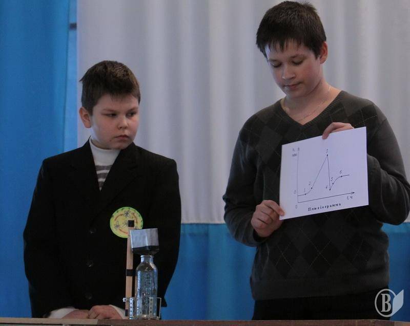 Членами жюри в оценивании выступления команд 7-х классов в финале были: методист научно-методического центра Морозова Ирина Григоровна, преподаватель национального педагогического университета доцент Дедович Валентин Николаевич, преподаватель ЧНПУ, доцент Дидович Николай Николаевич. Место в финале определяется по сумме баллов, полученных командами в отборочном туре, и презентации результатов, которая состоялась 12 марта 2010 года. По результатам отборочного тура и финала для команд 7-х классов в городском конкурс «Физика и жизнь» имеем (окончательный результат): первое место – команда 7-х классов ОУЗ №29, второе место Гимназия №31, третье место ОУЗ №1.