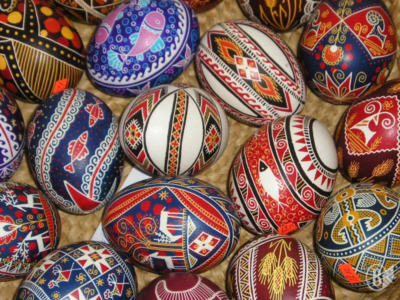 Також до вашого вибору як вишукані традиційні писанки, так і пасхальні яйця зі скла, бісеру, розписні ікони, розписні яйця з дерева, а також чудові вироби з лози, соломки, дерева.