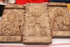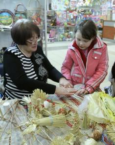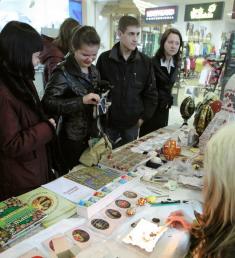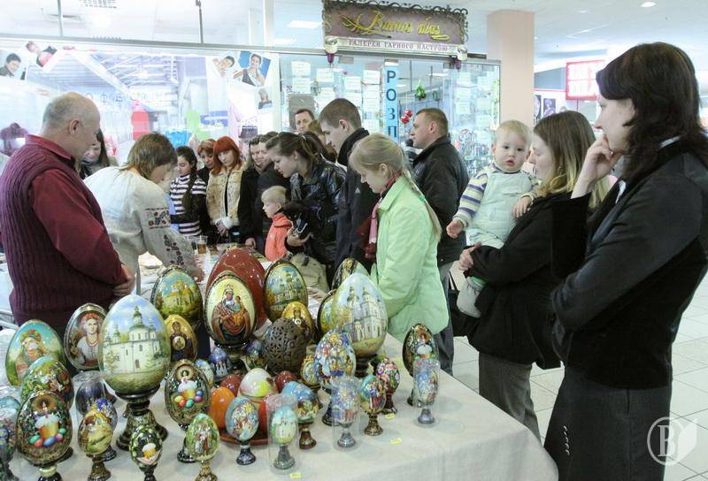 На выставке можно было приобрести весь необходимый инструментарий: писачки, краски, воск, литературу, а также как изысканные традиционные писанки, так и пасхальные яйца из стекла, бисера, расписные иконы, расписные яйца из дерева, а также замечательные изделия из лозы, соломки, дерева.