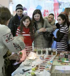 Члены Национального союза мастеров черниговские мастера Ольга Костюченко (писанкарство, вышивка), Нина Гачегова (плетение соломкой), Юрий Гриценко (бисероплетение), резьба по дереву - Сергей Святный из Нежина и Роман Ярмоленко из Чернигова, вышивальщицы Ольга Краснопольская и Татьяна Сидоренко поделились секретами своего искусства.