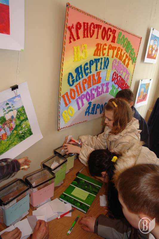 К празднику светлого Христового Воскресенья такая выставка открылась в выставочном зале областной организации национального союза художников Украины (Проспект Мира, 34). Здесь представлены разнообразные детские работы на пасхальную тематику – рисунки, аппликации, картины из разных материалов и писанки.