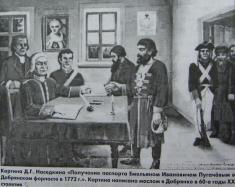 Пугачёв через два дня так и поступил. На вопрос майора Мельникова: «Какой ты человек и как тебя звать-величать?» - он, не тая своего имени, ответил: «Я польский уроженец, зовусь Емельян, Иванов сын, Пугачёв».