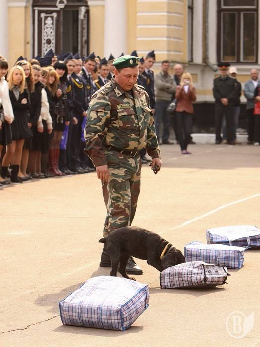 Бойовий дух юнакам. Яких урочисто проводжали на службу до війська піднімали артисти ансамблю «Сіверські клейноди», а чернігівські прикордонники їм, та всім присутнім продемонстрували виучку службових собак.