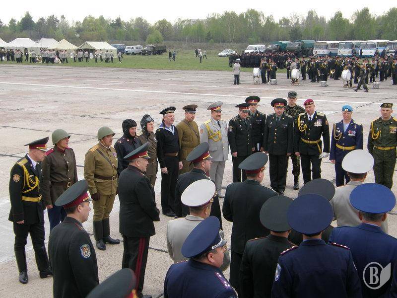 На взлетно-посадочной полосе Киевского авиационного завода “Авиант” 30 апреля проведена тренировка парадных расчетов к торжествам в День Победы на главной площади столицы.