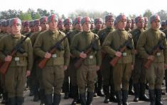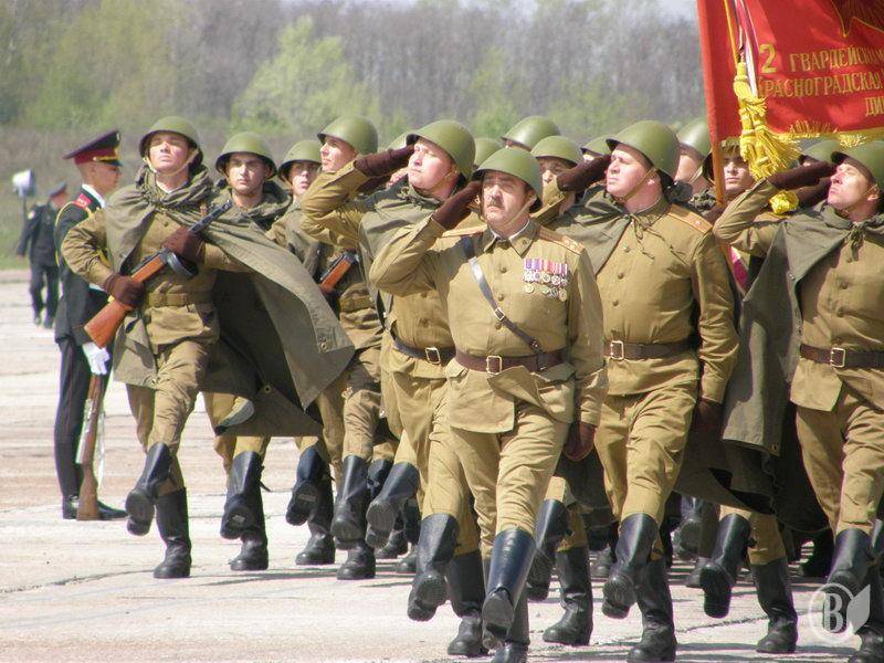 Это третья по счету тренировка. В этот раз все парадные расчеты уже были одеты в парадную форму одежды или форму времен Великой Отечественной войны.