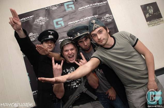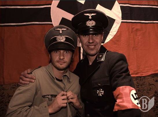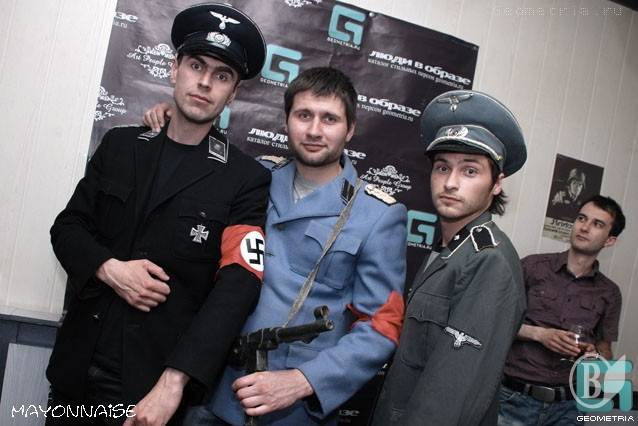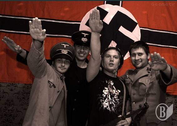 Пошив повязки со свастикой, флаг, надев немецкие фуражки и пилотки 40-х годов, модные молодые люди отплясывали за немцев в 45-м. Фотографии не постеснялись выложить в интерет (вони наведені нижче – прим. «ВВ»).