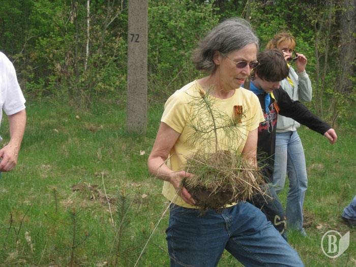 Потом ученики и другие участники мероприятия выехали за Березное, к площадке, где растут деревца-самосевы. Каждый выкопал себе по 2-3 дерева.