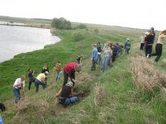Все саженцы высадили на берегу, который во время боев был сплошным окопом. Теперь здесь будет расти живая роща. И спустя годы сегодняшние школьники смогут приехать и посмотреть, как зарастают бывшие окопы.