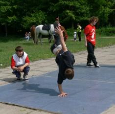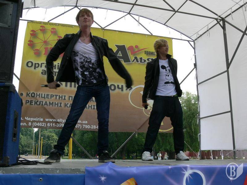 В Центральному парку культури і відпочинку на діточок чекала різноманітна розважальна програма, "родзинками" якої був дорослий російськомовний поп-гламур фривольного напрямку у присутності підозрілого повнолітнього елементу (див. відео). Чи то нетверезого, чи то не зовсім адекватного.