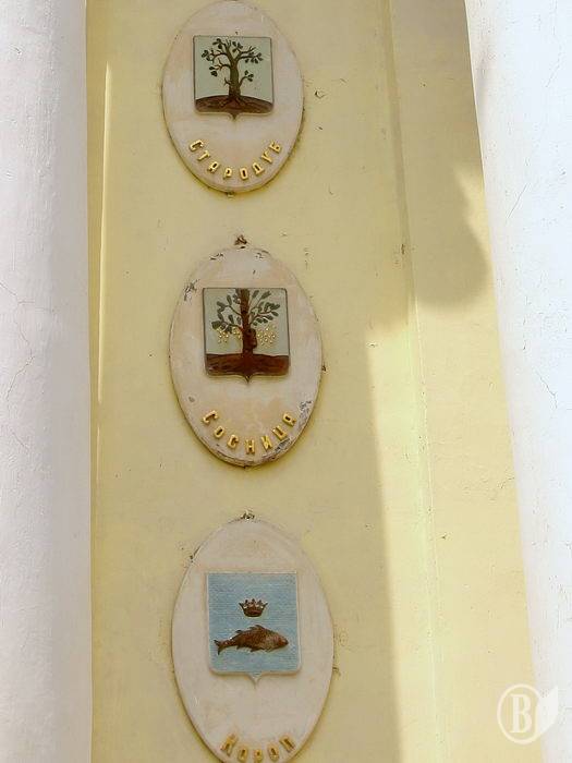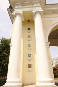 Арковий проїзд з двох боків флангують пропорційні пілони з двоколонними портіками іонічного ордену. На пілонах між колонами розміщені герби уїзних міст Чернігівської губернії.
