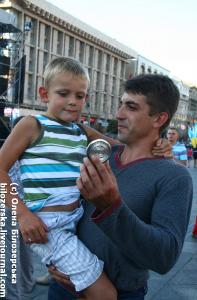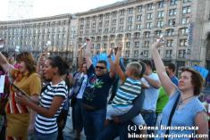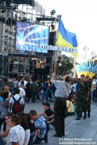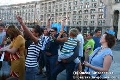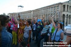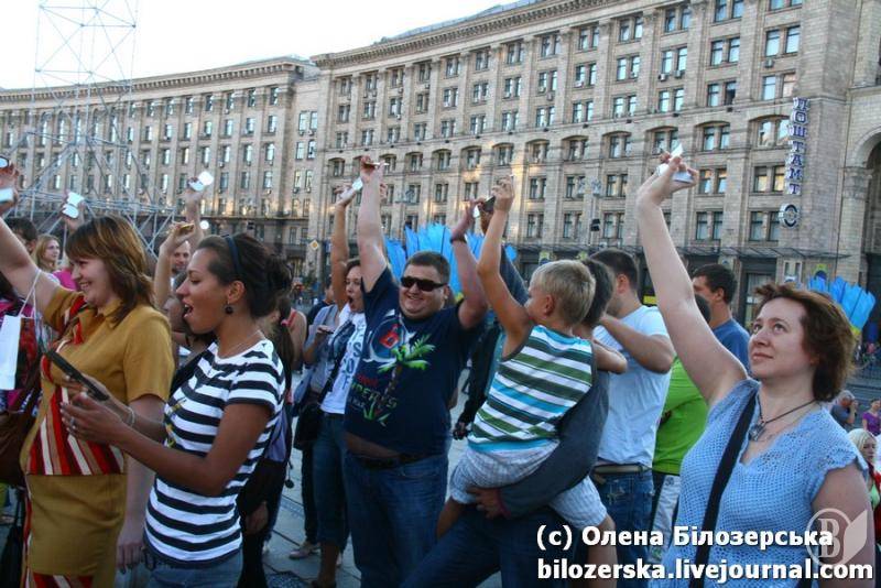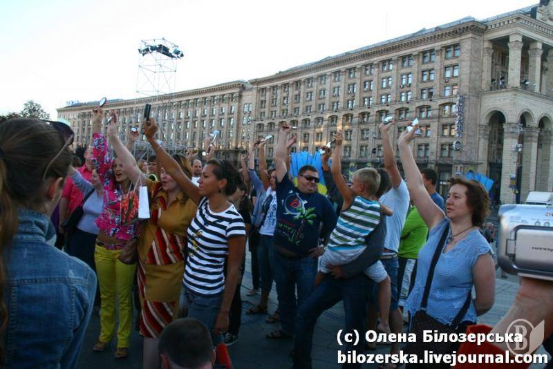У столиці на Майдані відбувся флешмоб до Дня незалежності України. Згідно із задумом, він тривав всього лише трохи більше 20 секунд і полягав ось в чому: коли годинник на Будинку профспілок пробив сім годин, всі учасники подивилися на себе у дзеркальце і голосно сказали: