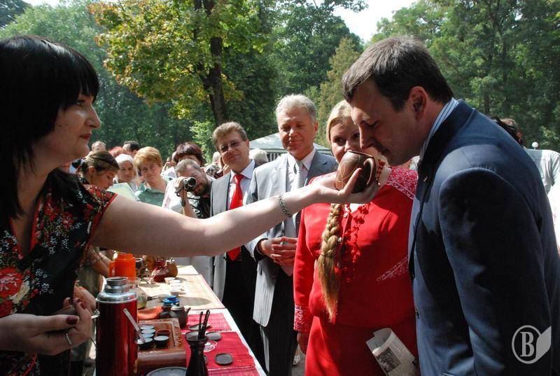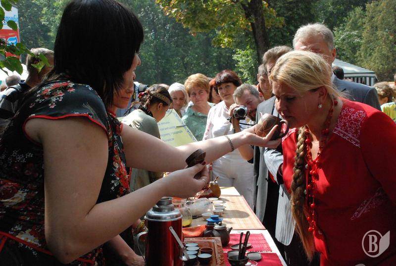 Під час свята-ярмарку квітів та плодів «Щастя краси» у Центральному парку культури та відпочинку чернігівський міський голова Олександр Соколов та голова Чернігівської обласної ради Наталія Романова взяли участь у своєрідній «чайній церемонії».
